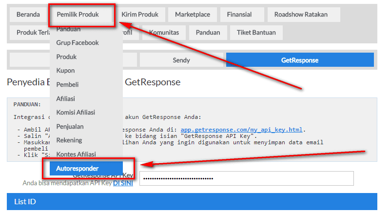 - Pada menu Pemilik Produk, klik sub menu Autoresponder