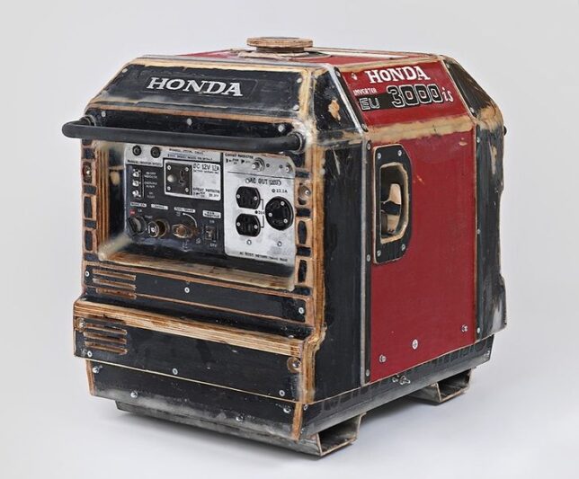 Seniman Tom Sachs sengaja memperlihatkan sambungan kasar, baut terbuka, dan karya yang jauh dari sempurna, justru di situ letak seninya.